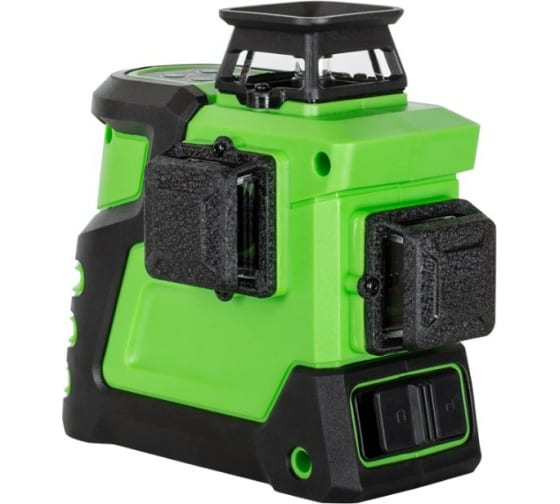 Компенсатор выравнивает лазерный луч в диапазоне ±3° в автоматическом режиме, вследствие чего, вам не нужно выставлять прибор по пузырьковому уровню. За счет компенсатора, избегается искажения лазерных плоскостей от неровностей поверхности. При отклонении нивелира более, чем на 3° раздается звуковой сигнал, а лазерная линия начнет мигать.