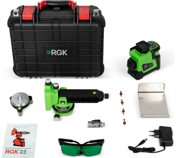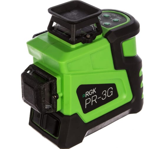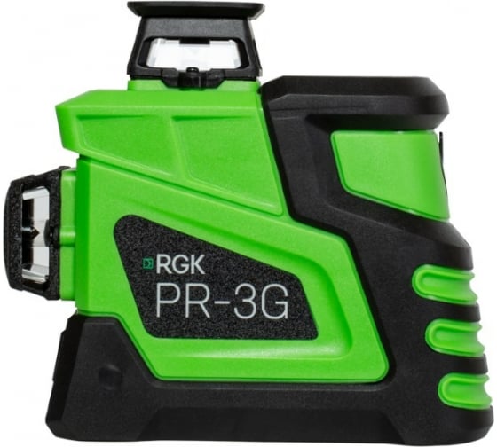 Лазерный уровень RGK PR-3G проецирует горизонтальную и 2 вертикальные линии. Лазерный луч зеленого цвета хорошо различим при ярком солнечном освещении и на поверхностях темного цвета.