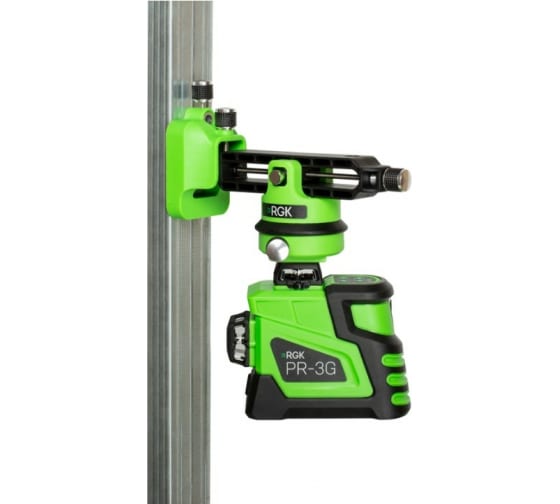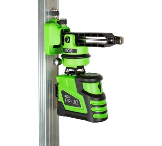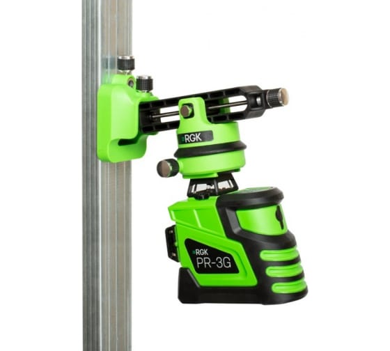 Съемное магнитное крепление обеспечит установку уровня на нужной высоте на вертикальных поверхностях из магнитных металлов. Плавная регулировка поможет выставить лазерный нивелир RGK PR-3G на нужном расстоянии от стены. За счет отверстия для шурупа, вы можете установить нивелир на поверхностях из дерева, бетона и кирпича.
