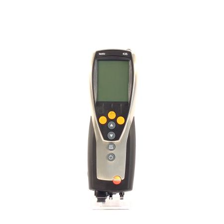 В приборе testo 435-4 имеется встроенный сенсор дифференциального давления, работающий в диапазоне 0 - 25 гПа. Для точности показаний предусмотрена температурная компенсация значения измерения дифференциального давления. Магнитные фиксаторы на задней панели прибора исключают необходимость постоянно держать прибор в руках.
